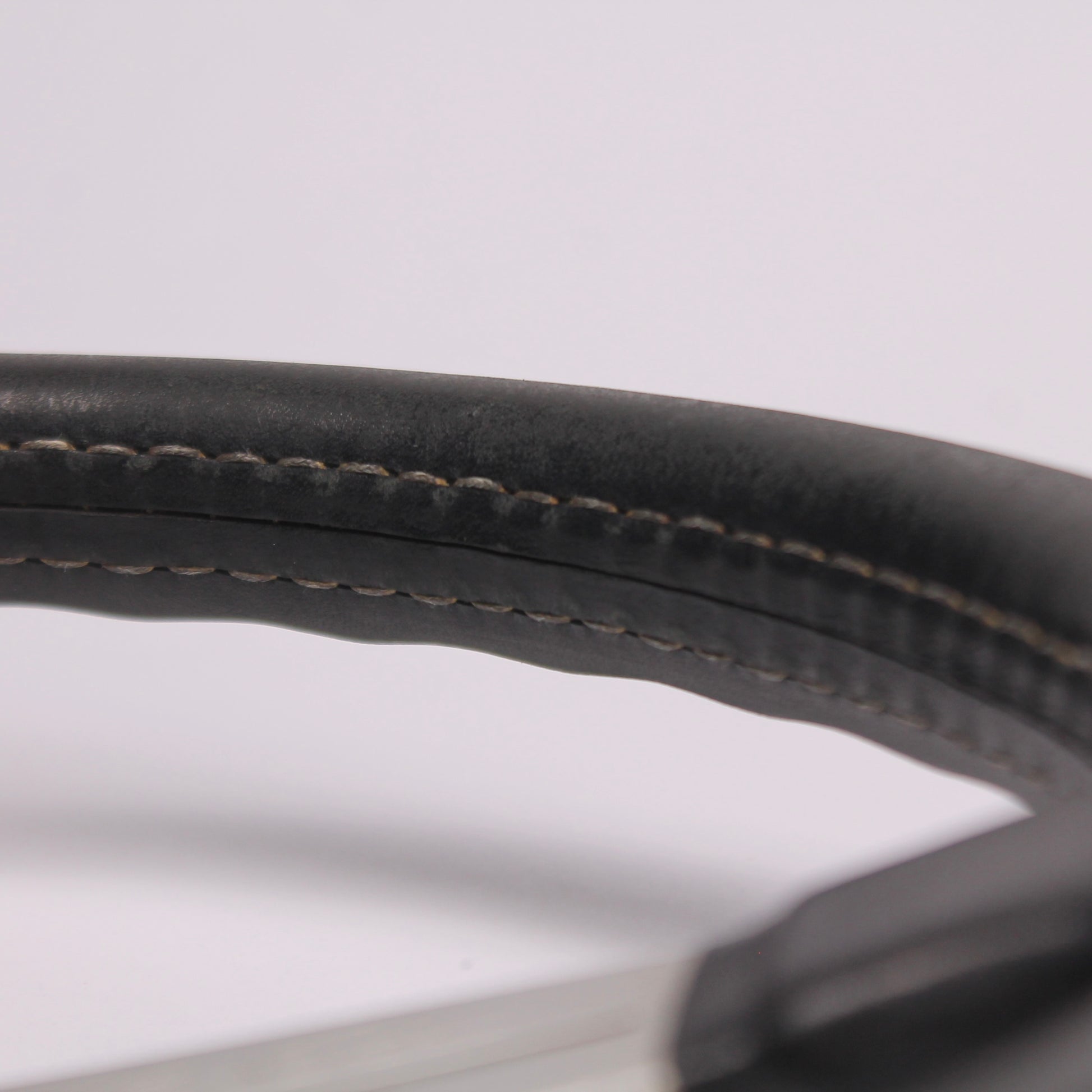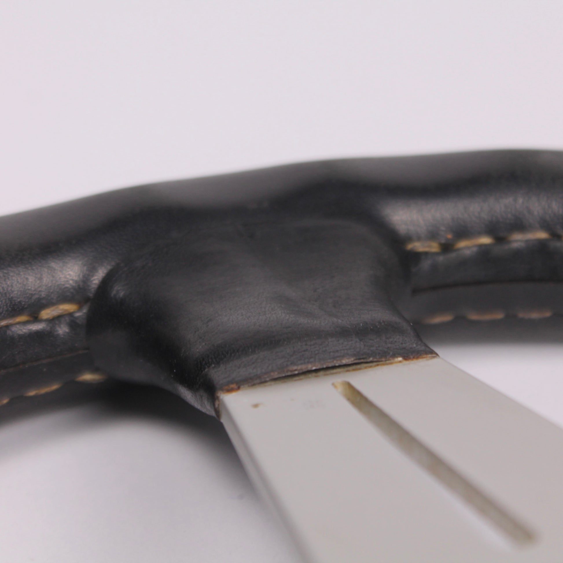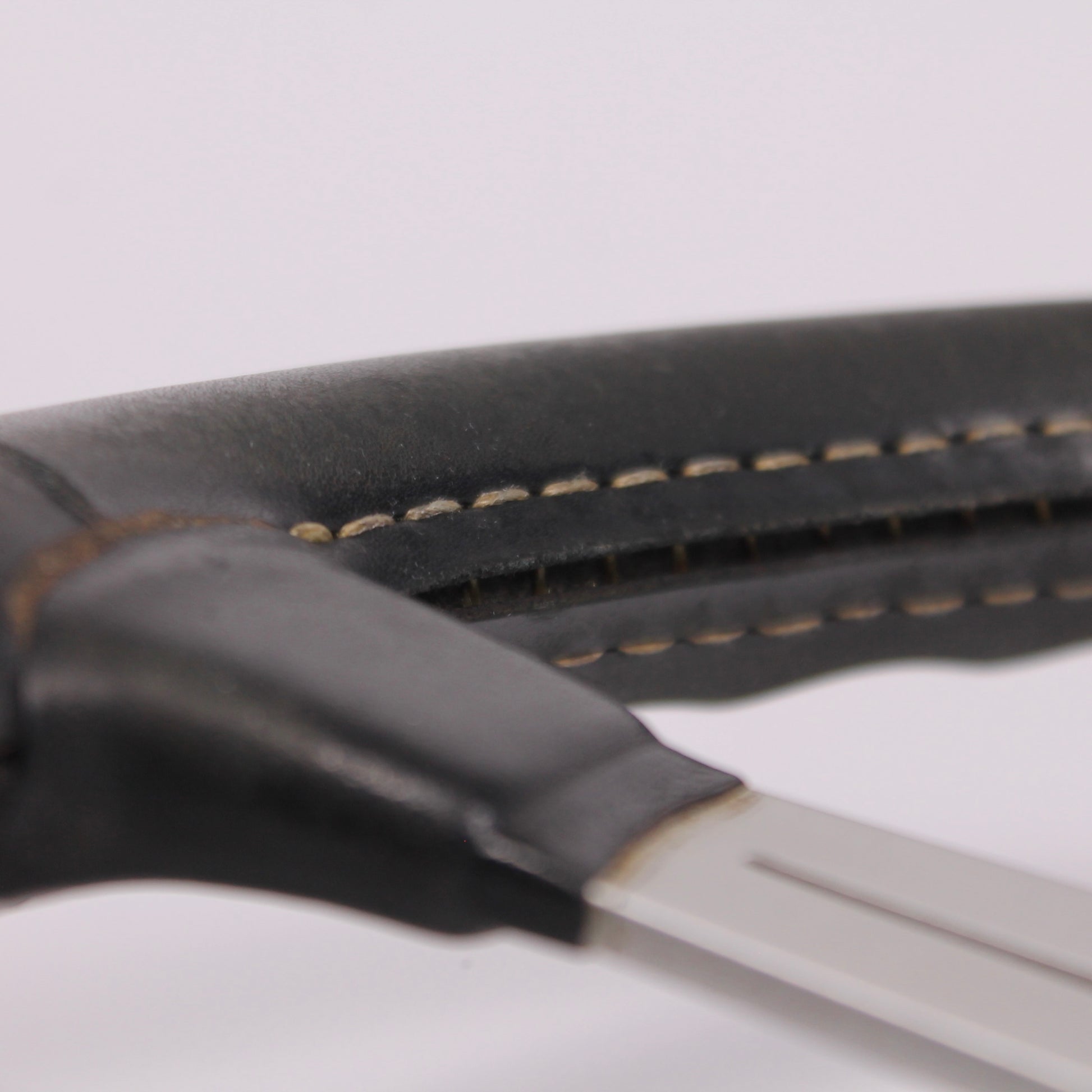 • Black leather grip with white stitching
