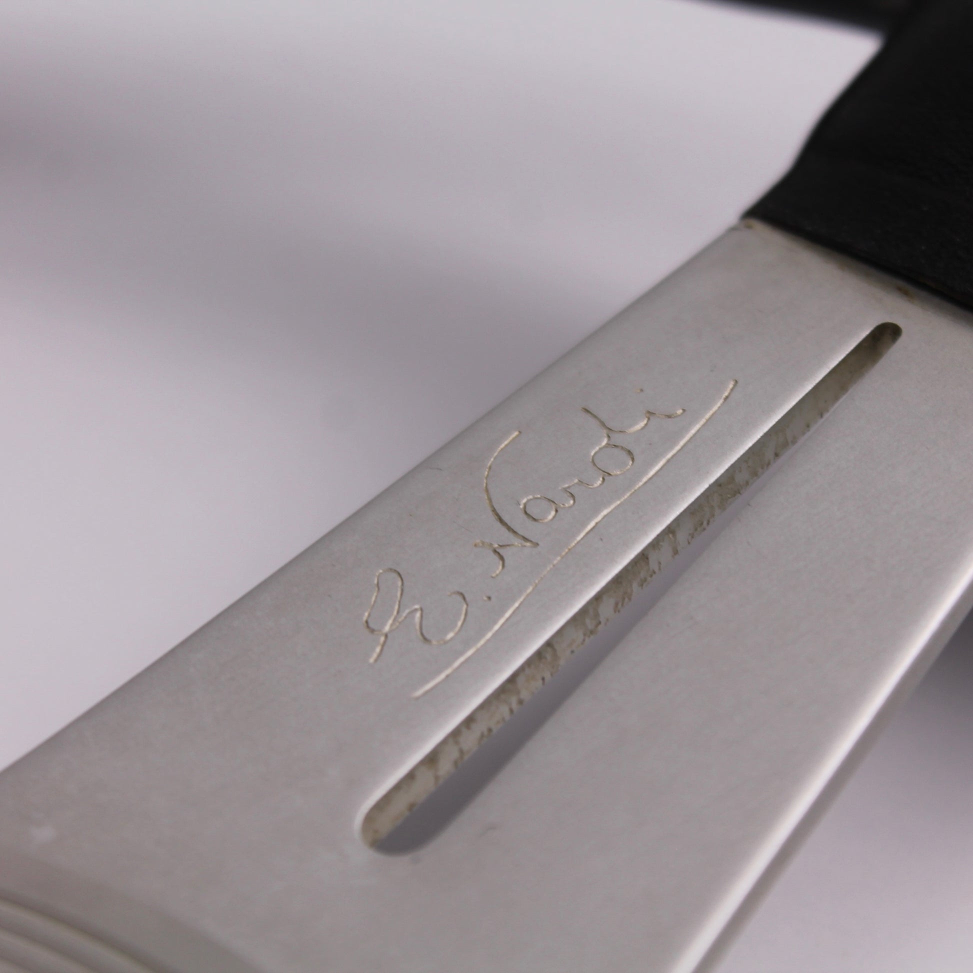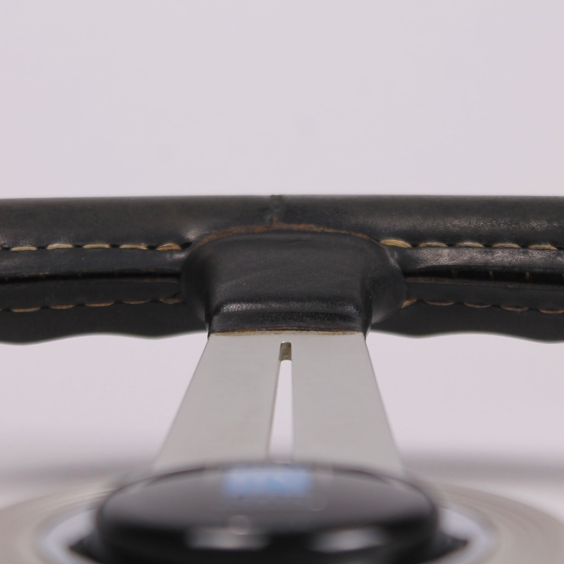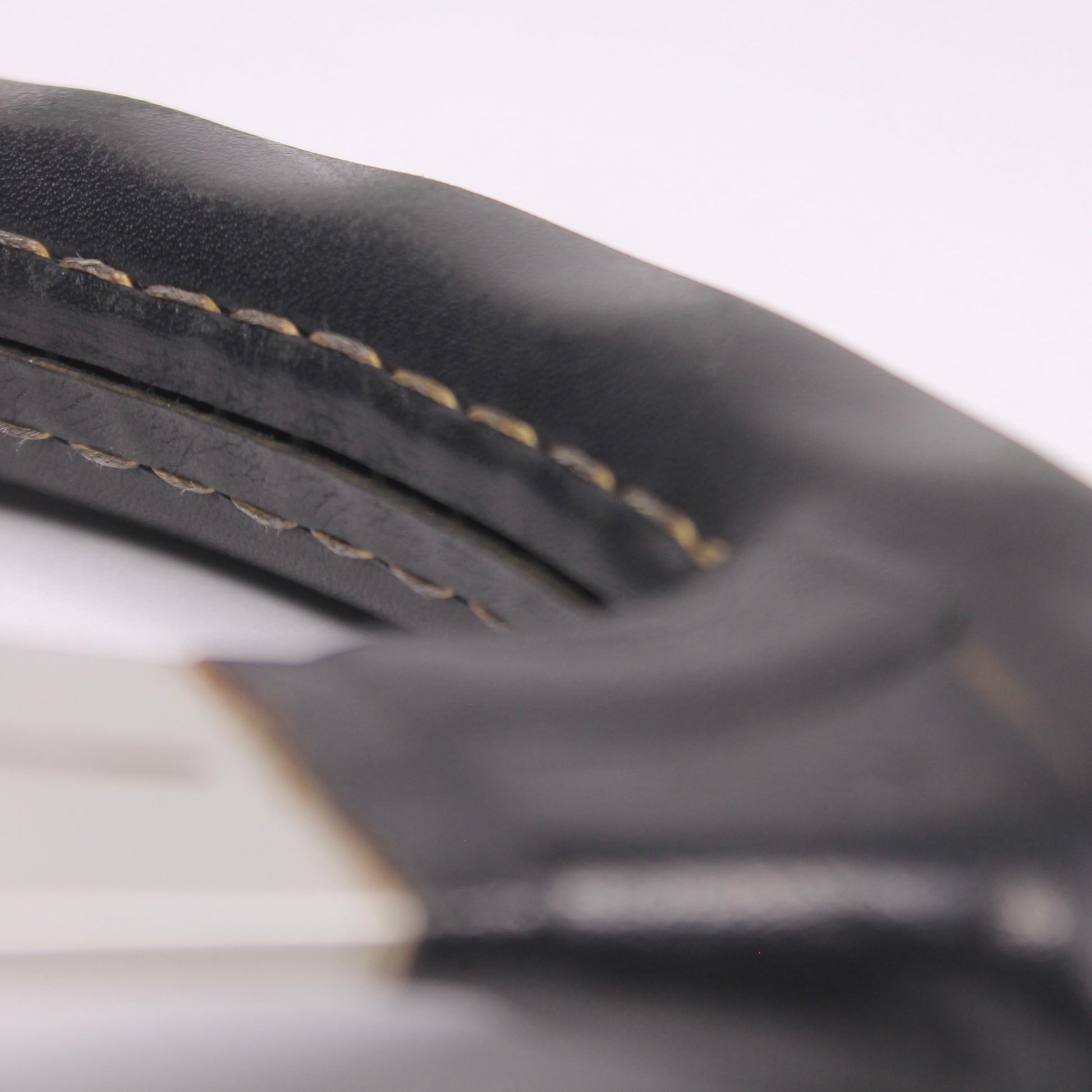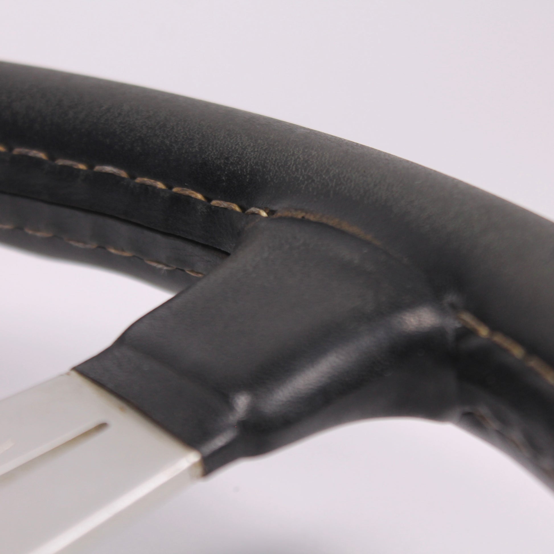• Black leather grip with white stitching