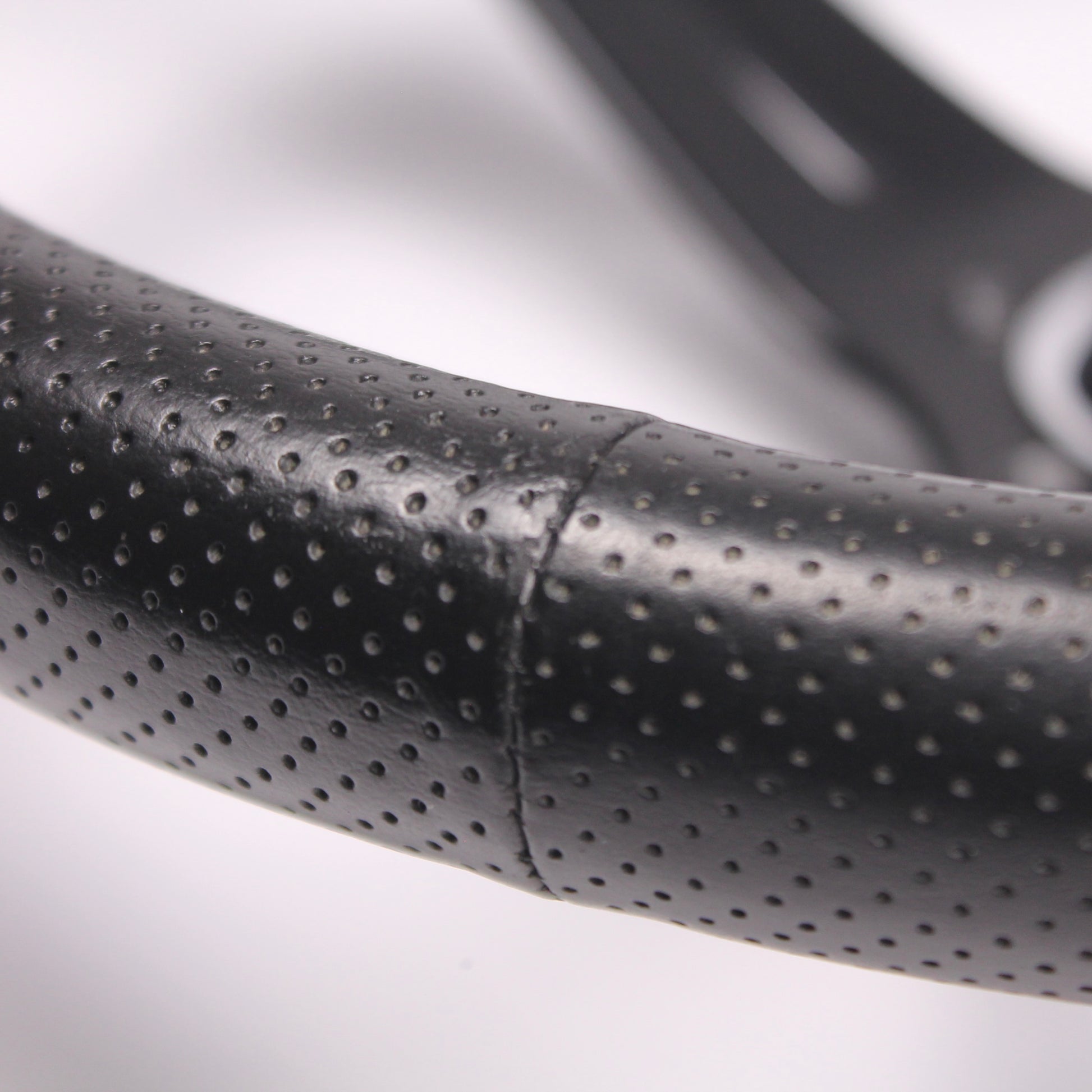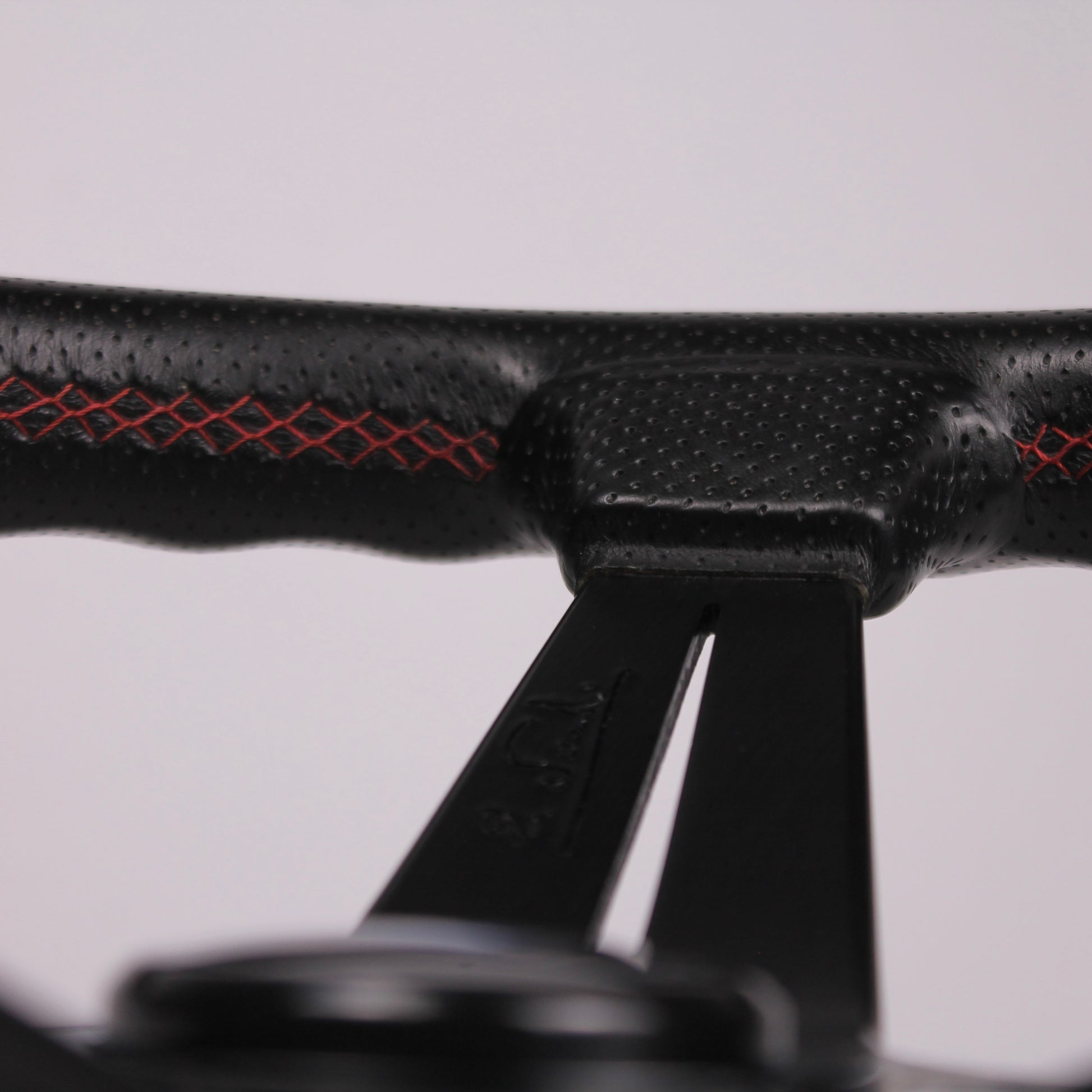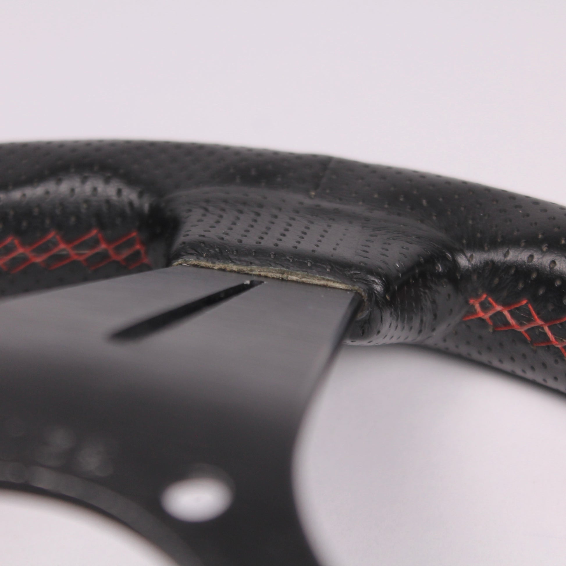 • Black perforated leather grip with red stitching